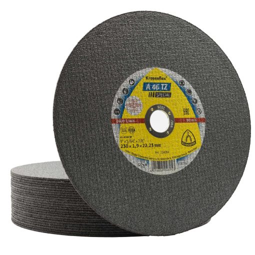 Disco de Corte A 46 TZ Special Kronenflex® 9 Polegadas – 230mm x 1,9mm x 22,23mm Centro Deprimido para Aço Inox proporciona um Corte Rápido e Preciso, Livre de Ferro, Enxofre e Cloro.