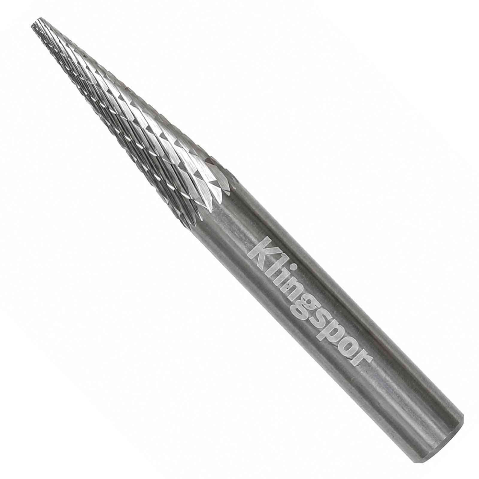 Lima rotativa cônica hf 100 m 6x20x6mm klingspor em metal duro com ponta aguda, ideal para trabalhos de precisão, acabamento interno e rebarbação em metais.